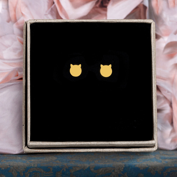 Silver stud earrings CAT - silver 925 GOLD PLATED