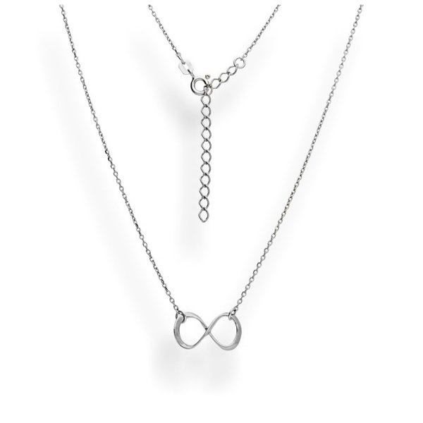 Klasyczny, minimalistyczny naszyjnik ze znakiem nieskończoności, który został wykonany ze srebra p.925.
