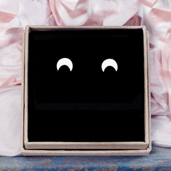 Piękne, eleganckie i uniwersalne kolczyki srebrne, próby 925, w kształcie księżyców.