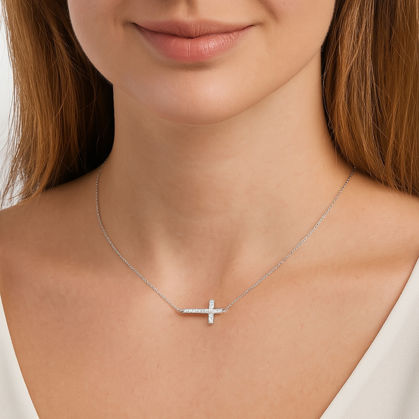 Prześliczny, delikatny naszyjnik z krzyżykiem. Został wykonany ze srebra próby 925, ozdobiony cyrkoniami najwyższej jakości i pokryty rodem.