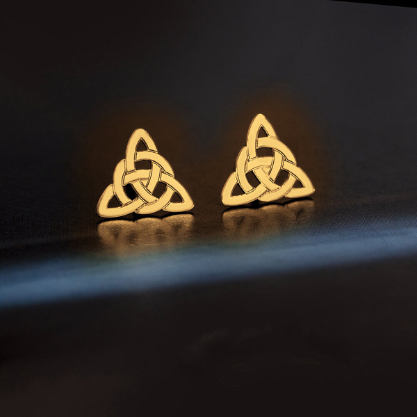 Piękne, klasyczne kolczyki srebrne, próby 925, pokryte złotem 24K w kształcie węzła celtyckiego.