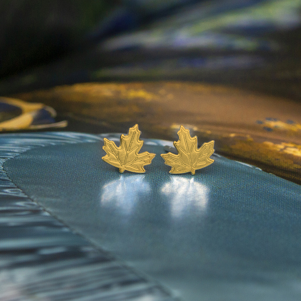 • SZTZ-751 Kolczyki sztyfty LIŚĆ KLONU - Srebro pr. 925 POZŁACANE